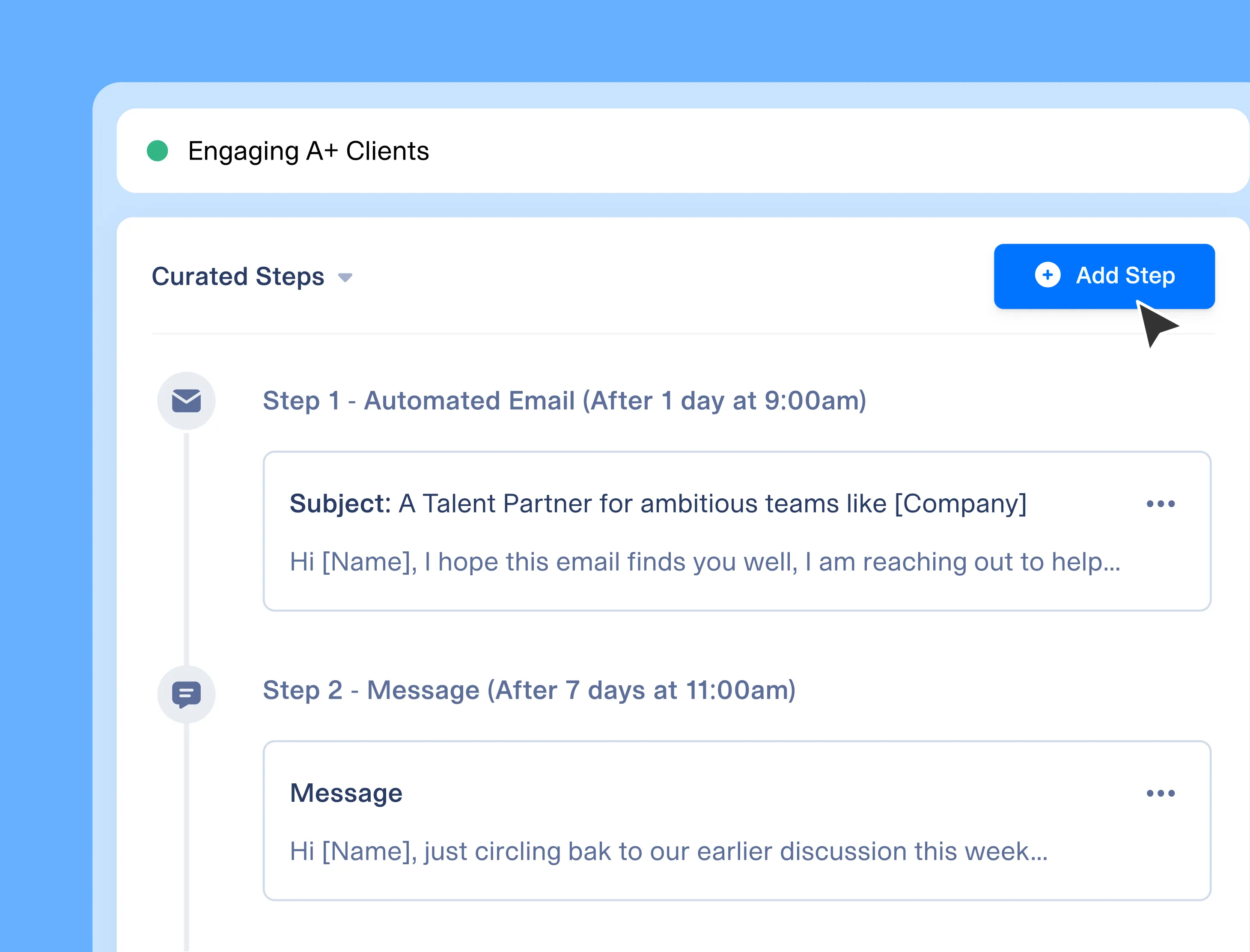 Context is a requirement and our AI agents use candidate data and prior engagement to generate messages that are truly personalised